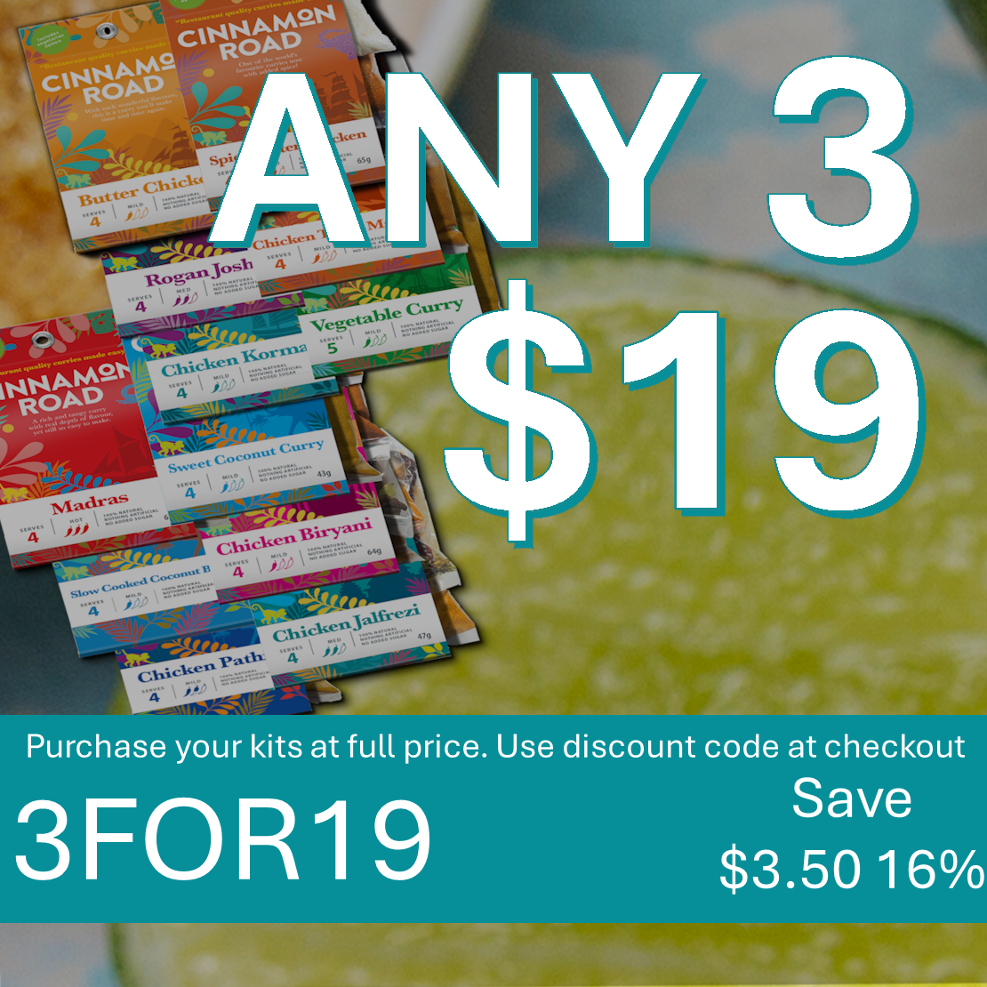 Categories: Select a Category Mild Spice Mixes $7.50 Medium Spice Mixes $7.50 Hot Spice Mixes $7.50 Gift Spice Sets $55.99 Promotions ANY 3 for $19 $22.50 Do NOT add to cart Added! 3 Top Pick Kits $17 147g $22.50 Add To Cart Added! 3 Medium/Hot kits for $17 172g $22.50 Add To Cart Added! 12 for $66 One of each kit 614g $90.00 Add To Cart Added! 4 for $24 Butter Chicken Spice Mix 216g $30.00 Add To Cart Added! 3 for $15 Vegetable Curry Spice Mixes 132g $22.50 Add To Cart Added! $8 OFF ANY Spend of $22+ (Referred a Friend) $0.00 Use your discount code at check-out Added! 3 for $15 Mild Curry Spice Mixes 134g $22.50 Add To Cart Added! 3 for $16 Madras Spice Mix 201g $22.50 Add To Cart Added!